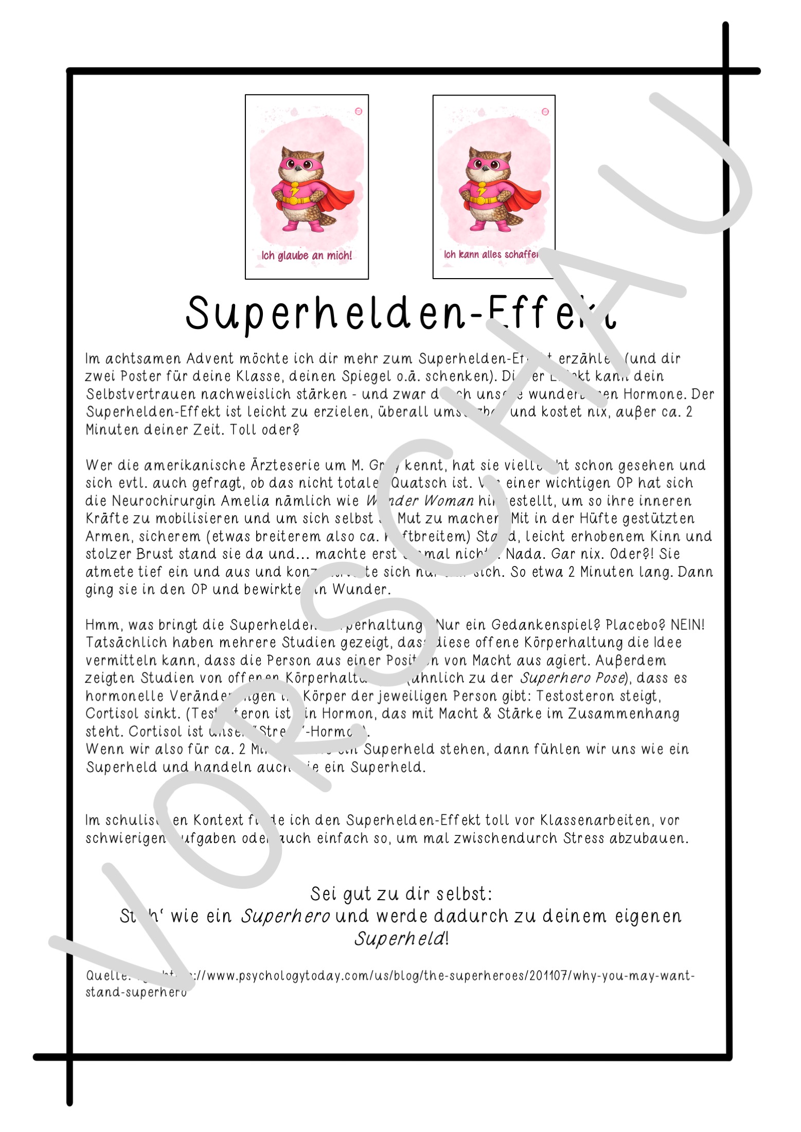 Der Superhelden-Effekt ist toll. Er ist leicht umsetzbar, benötigt kein Material und steigert nachweislich das Selbstvertrauen.
