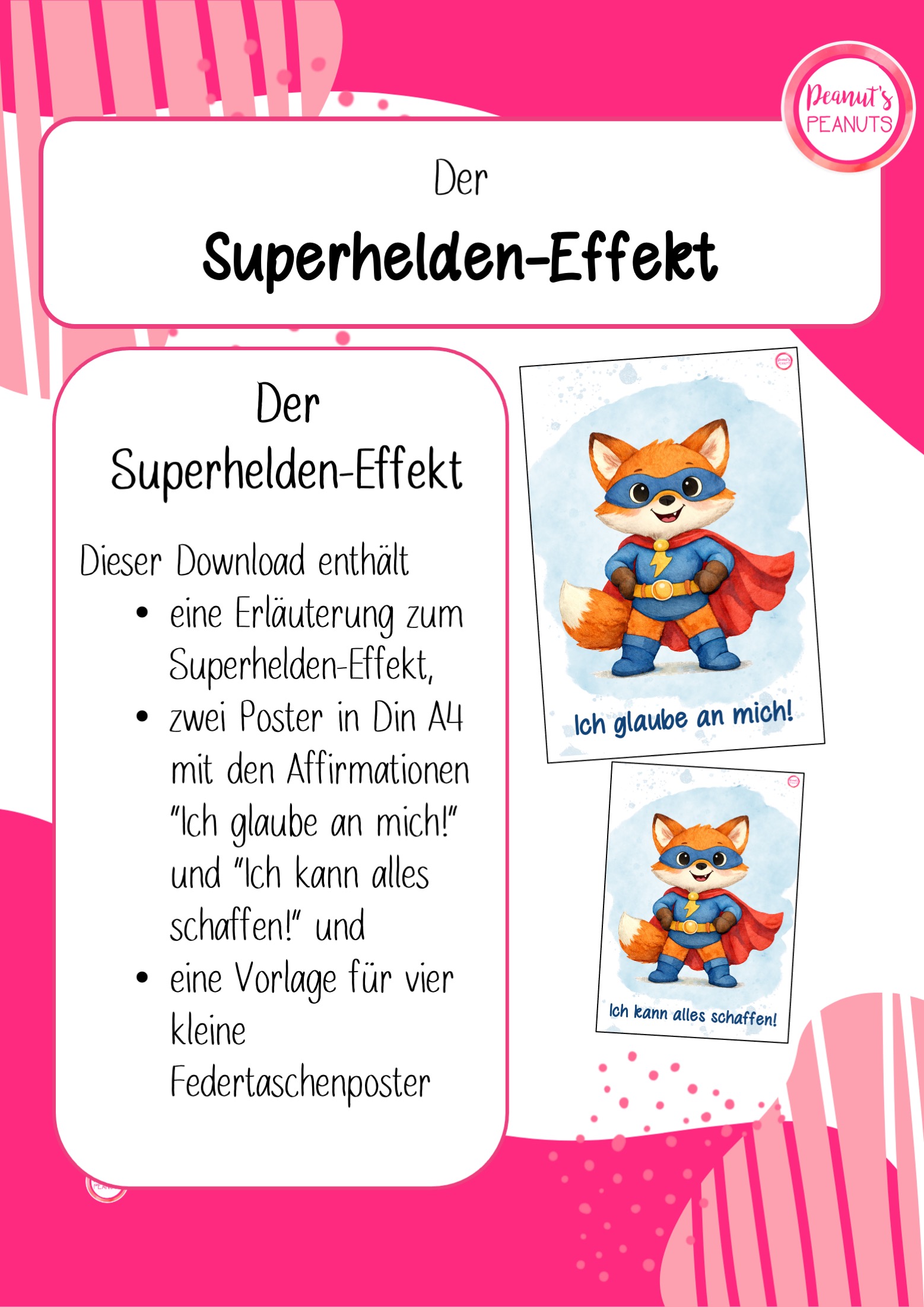 - 2 verschiedene Poster für den Klassenraum in DinA4 oder auch für die Federtasche (2 verschiedene Affirmationen; s. Bilder)