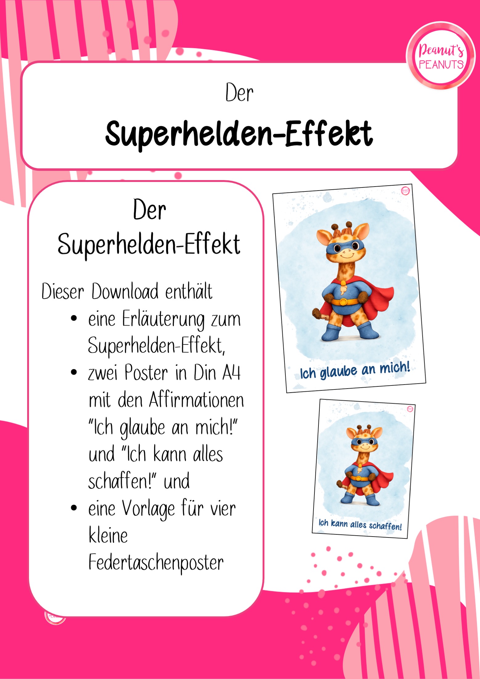 - 2 verschiedene Poster für den Klassenraum in DinA4 oder auch für die Federtasche (2 verschiedene Affirmationen; s. Bilder)