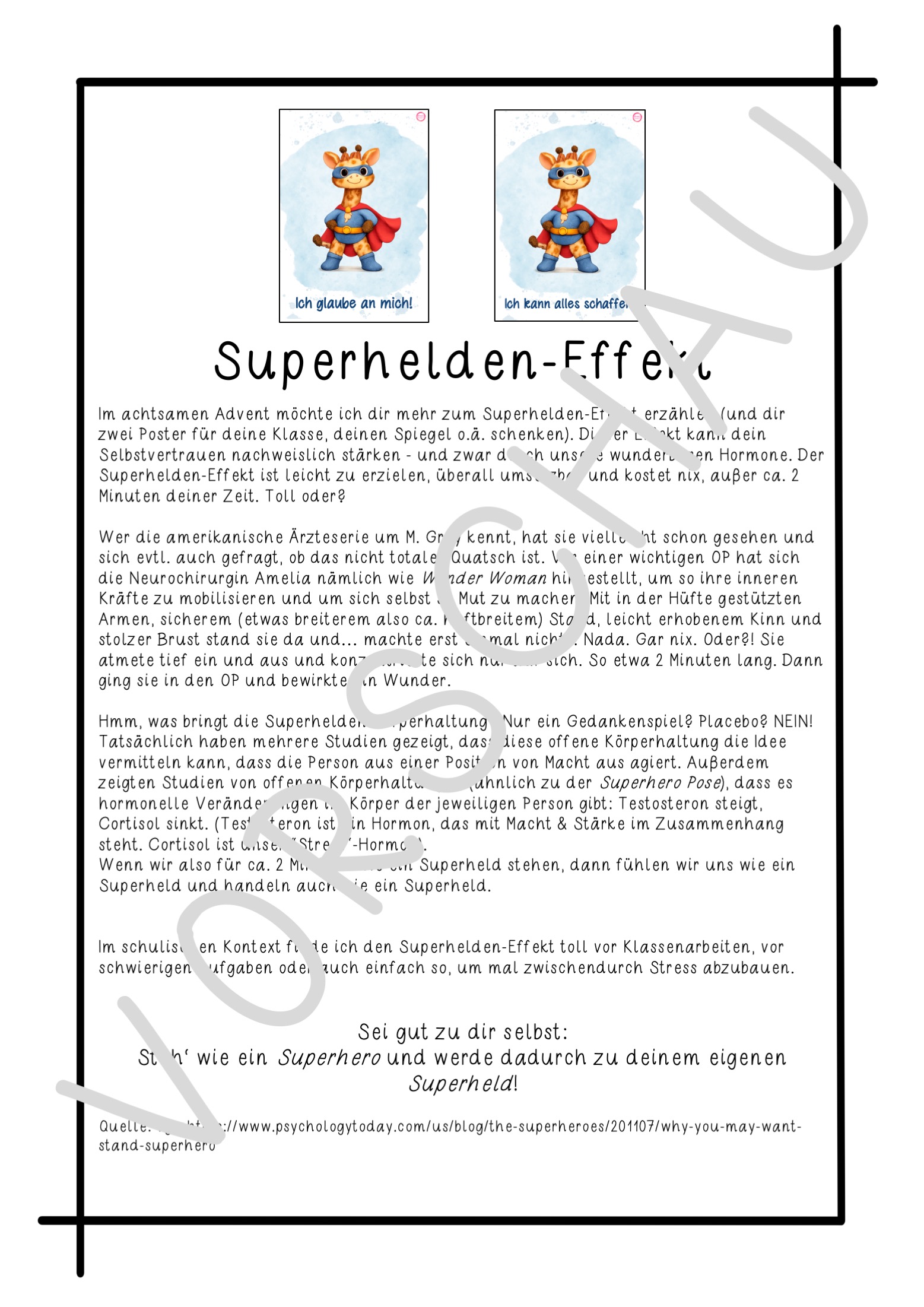 Der Superhelden-Effekt ist toll. Er ist leicht umsetzbar, benötigt kein Material und steigert nachweislich das Selbstvertrauen.
