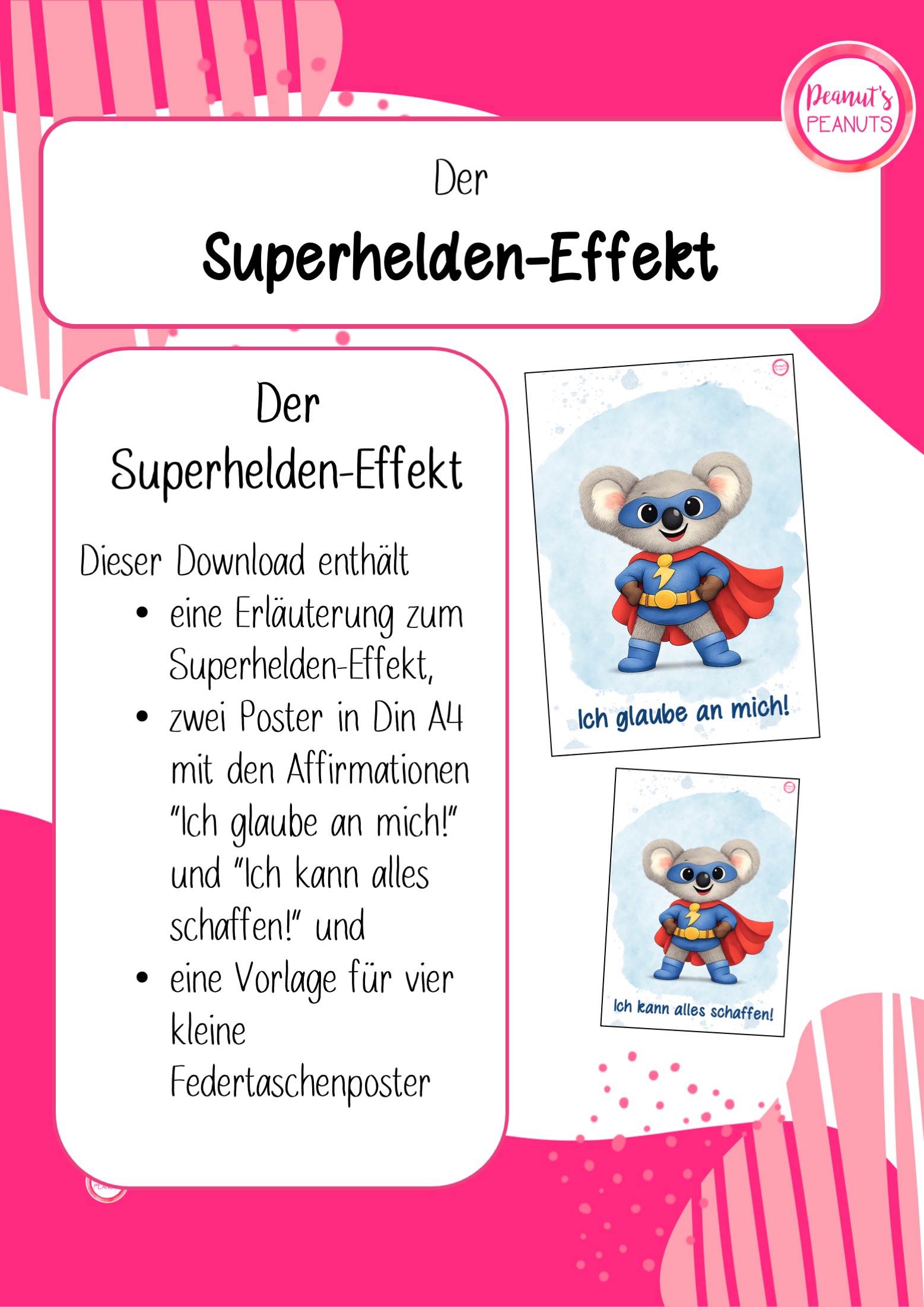 • 2 verschiedene Poster für den Klassenraum in DinA4 oder auch für die Federtasche (2 verschiedene Affirmationen; s. Bilder)