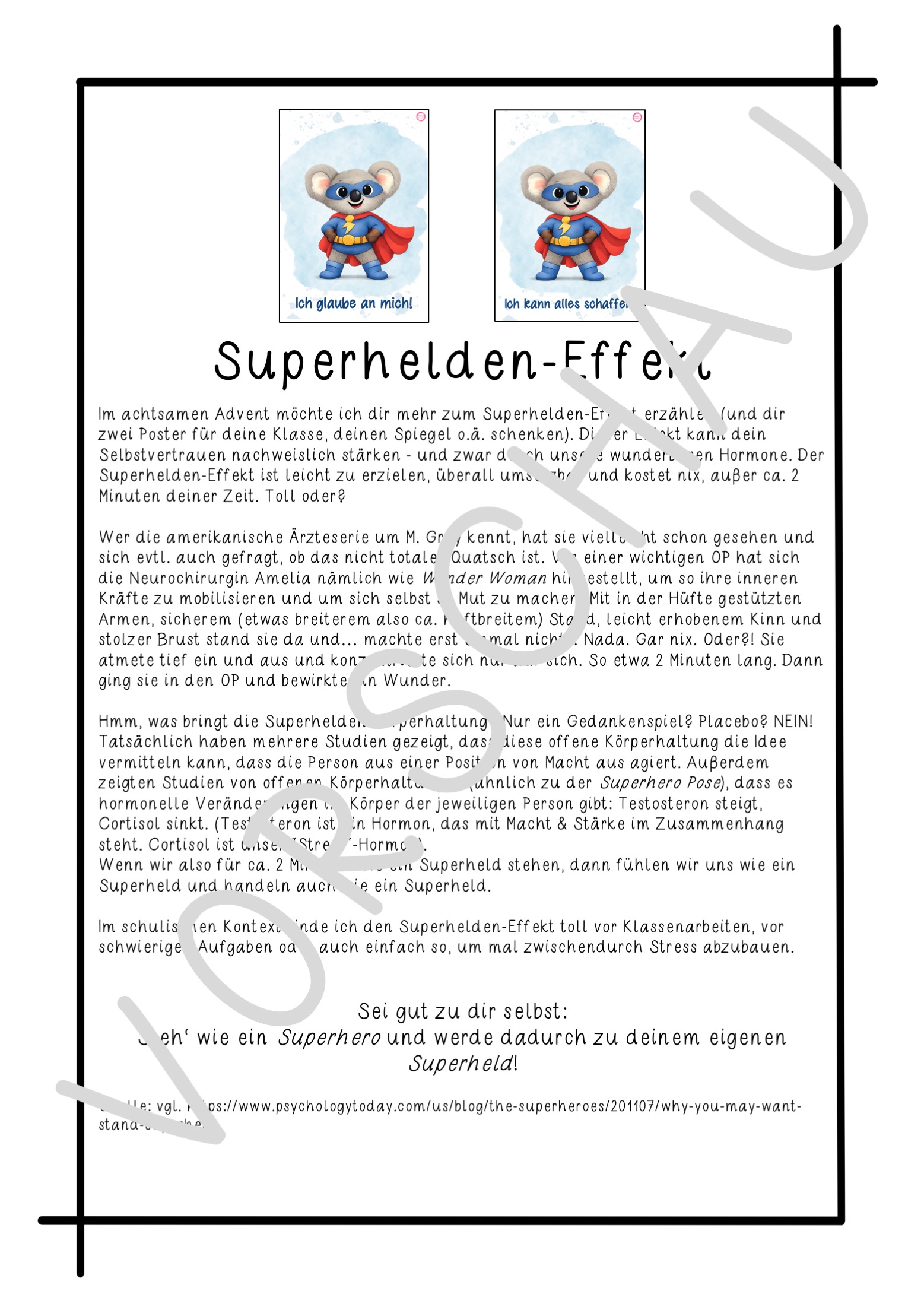 Der Superhelden-Effekt ist toll. Er ist leicht umsetzbar, benötigt kein Material und steigert nachweislich das Selbstvertrauen.