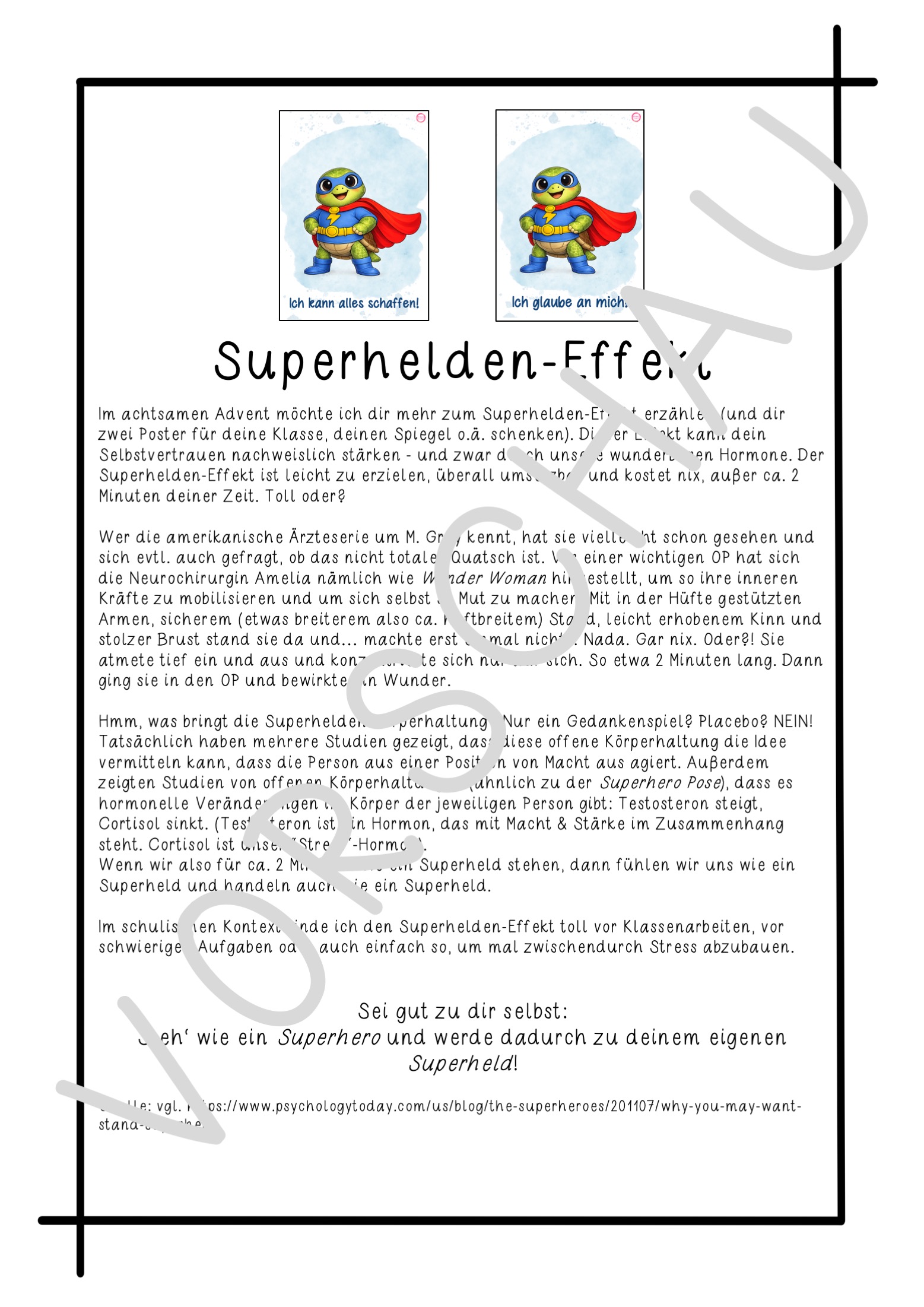 Der Superhelden-Effekt ist toll. Er ist leicht umsetzbar, benötigt kein Material und steigert nachweislich das Selbstvertrauen.