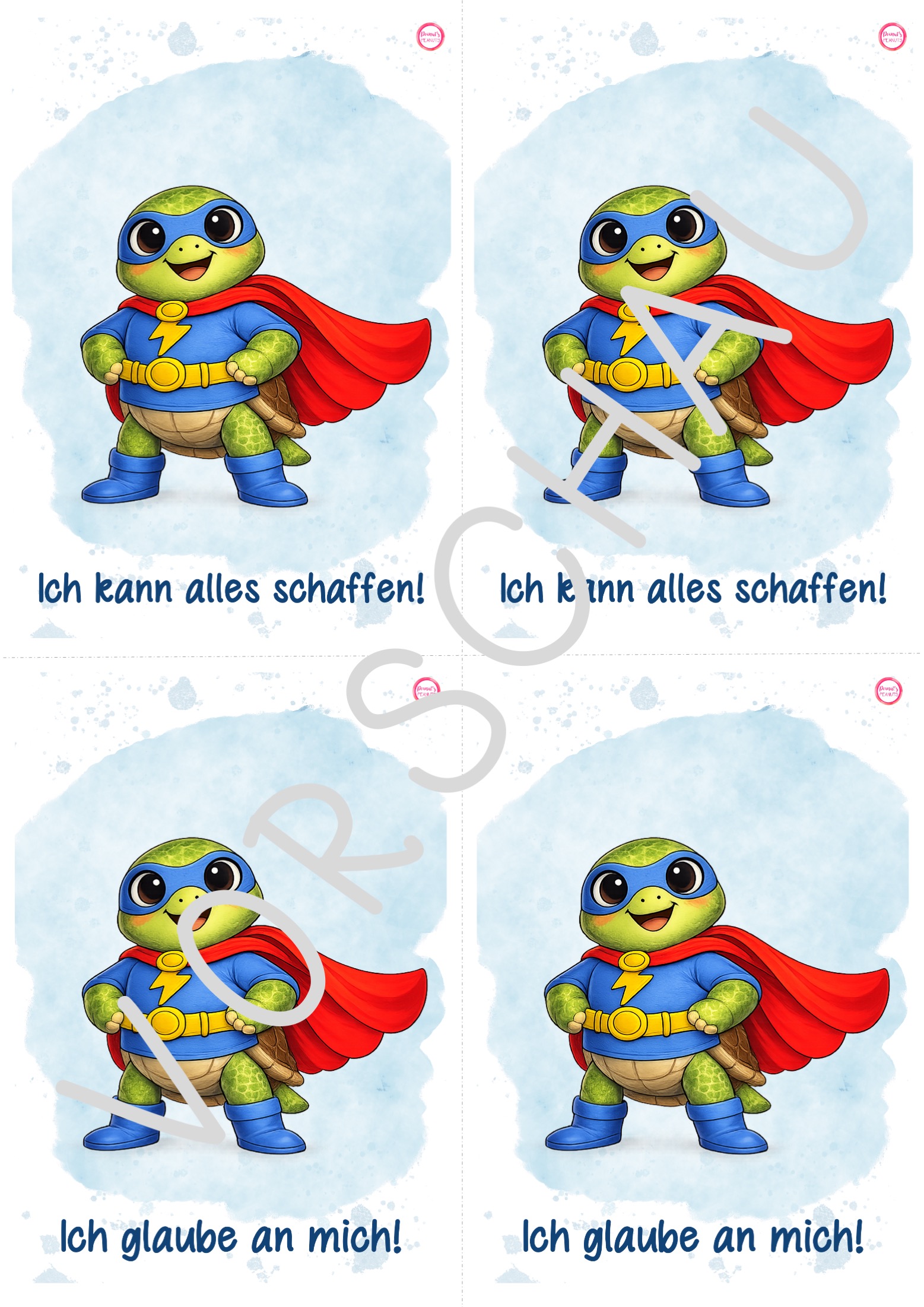 - 2 verschiedene Poster für den Klassenraum in DinA4 oder auch für die Federtasche (2 verschiedene Affirmationen; s. Bilder)